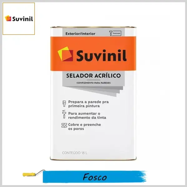 Selador Acrílico SUVINIL é ideal para paredes novas internas e externas de reboco, blocos de concreto e concreto aparente.