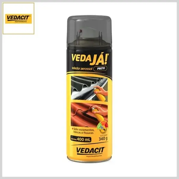 Selador Emborrachado Vedajá Aerossol Preto, 400ml - Lata Spray - Vedacit