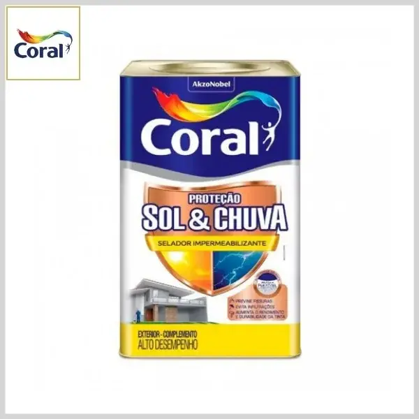 CORAL SELADOR IMPERMEABILIZANTE SOL&CHUVA é um complemento acrílico de côr branca, indicado para quem quer proteger paredes internas e externas das casas, prédios e muros, Sua película flexível permite acompanhar os movimentos de dilatação e contração das paredes, causadas pelas mudanças de tempo e temperatura. Previne infiltrações de fora para dentro, além de aumentar a durabilidade e o rendimento da tinta de acabamento final.