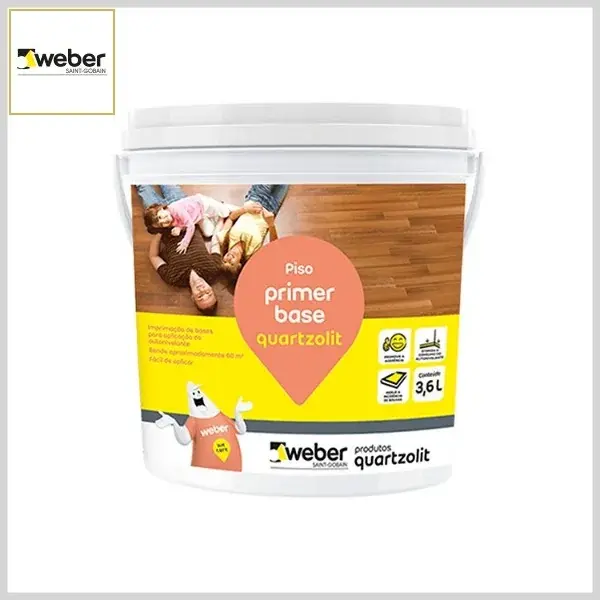 Primer base Quartzolit é um primer acrílico monocomponente à base de água para aplicação sobre substratos de concreto e contrapisos devidamente curados. É indicado para selamento e fechamento de poros em bases de concreto, lajes e contrapisos, para posterior aplicação de pisos vinílicos ou laminados.
