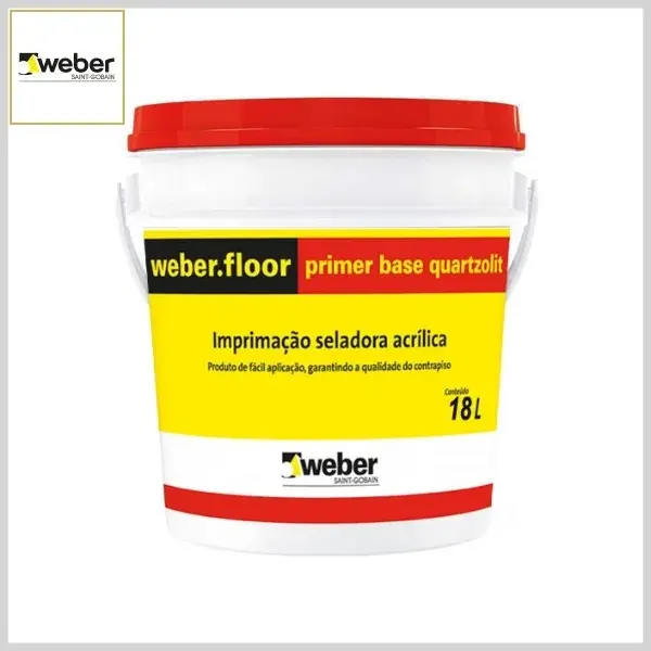 Primer base Weber.floor Quartzolit é um primer acrílico monocomponente à base de água para aplicação sobre substratos de concreto e contrapisos devidamente curados. É indicado para selamento e fechamento de poros em bases de concreto, lajes e contrapisos, para posterior aplicação de soluções e produtos autonivelantes.