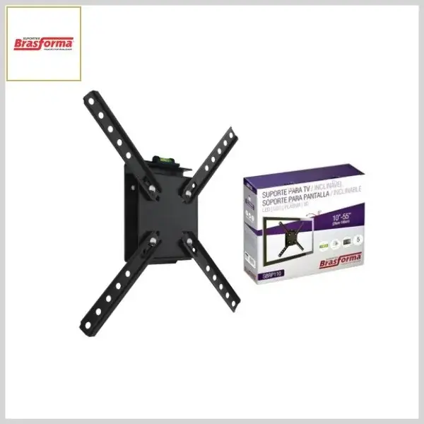 Suporte de Parede Inclinável SBRP110 p/Tv (Caixa, Tela Plana, 10 a 55") - Carga Máxima: 40 kg - Brasforma