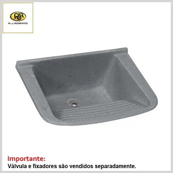 Produto confeccionado em mármore sintético, com espessura reforçada e cobertura granitada de gel coat brilhante, sendo indicado para utilização em lavanderias e áreas de serviço. O produto pode ser instalado com a coluna de apoio Rorato ref.5082 (fixada no piso) ou sem coluna, desde que sobre parede de alvenaria e com o uso do conjunto de fixação apropriado, adquiridos em separado.