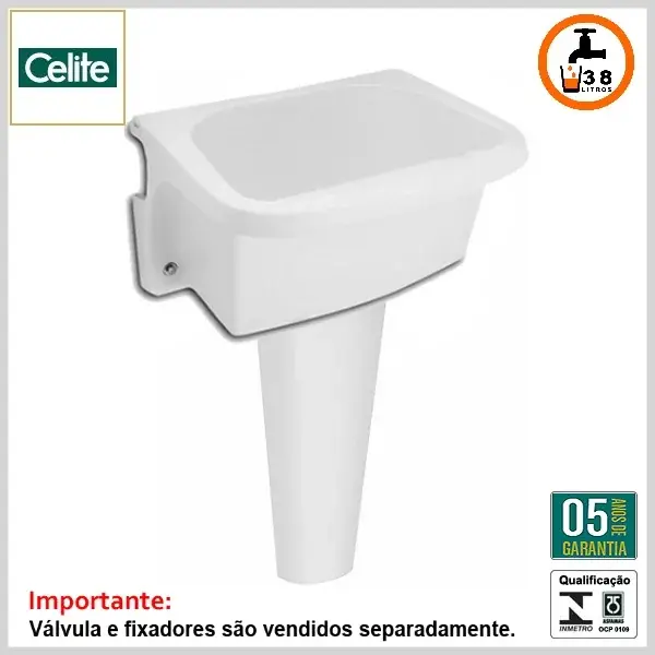 Conjunto confeccionado em material cerâmico esmaltado, sendo indicado para utilização em lavanderias e áreas de serviço. Acompanha coluna de apoio Celite ref.51203, na mesma cor do tanque de roupas.