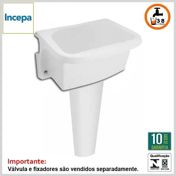 Conjunto confeccionado em material cerâmico esmaltado, sendo indicado para utilização em lavanderias e áreas de serviço. Acompanha coluna de apoio Incepa ref.51203, na mesma cor do tanque de roupas.