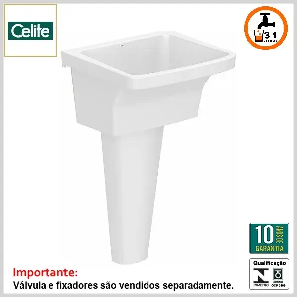 Conjunto confeccionado em material cerâmico esmaltado, sendo indicado para utilização em lavanderias e áreas de serviço. Acompanha coluna de apoio Celite ref.51203, na mesma cor do tanque de roupas.