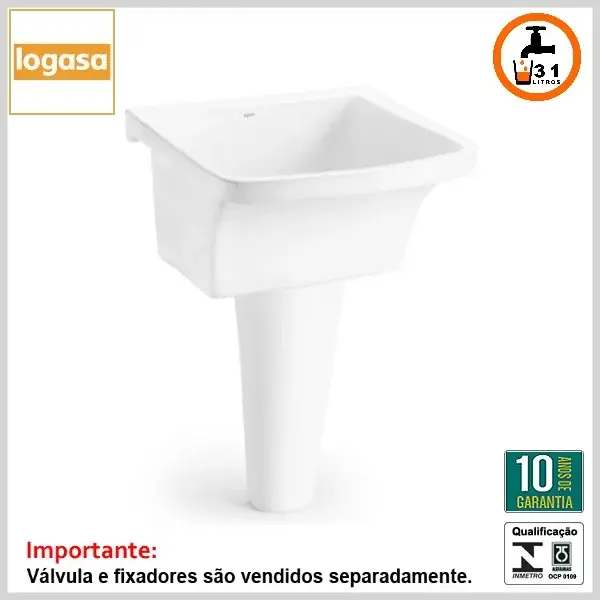 Conjunto confeccionado em material cerâmico esmaltado, sendo indicado para utilização em lavanderias e áreas de serviço. Acompanha coluna de apoio Logasa ref.51203, na mesma cor do tanque de roupas.