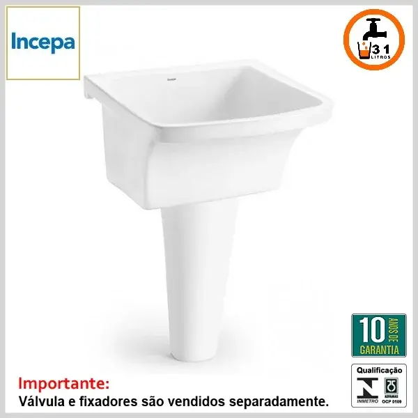 Conjunto confeccionado em material cerâmico esmaltado, sendo indicado para utilização em lavanderias e áreas de serviço. Acompanha coluna de apoio Incepa ref.51203, na mesma cor do tanque de roupas.