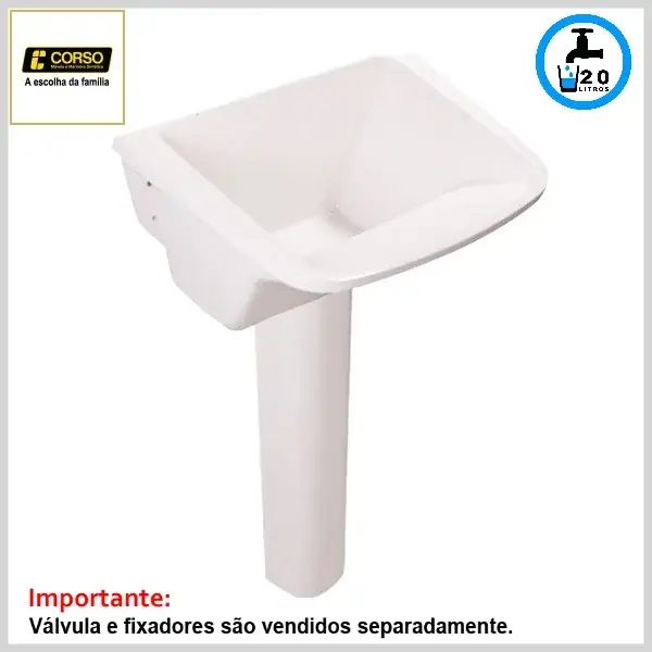 Conjunto confeccionado em mármore sintético brilhante, sendo indicado para utilização em lavanderias e áreas de serviço. Acompanha coluna de apoio Corso, na mesma cor do tanque de roupas.