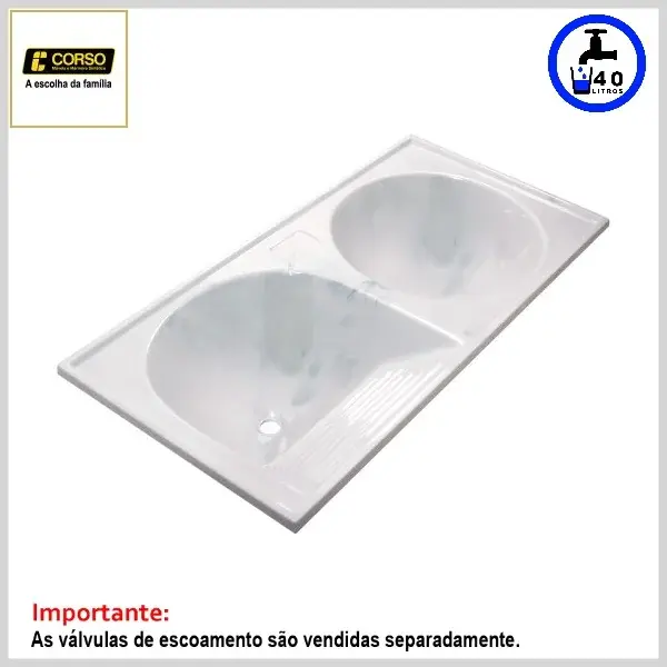 Tanque de Roupas Duplo Alvenaria 100x50 40lts Mármore Sintético - Branco - Corso