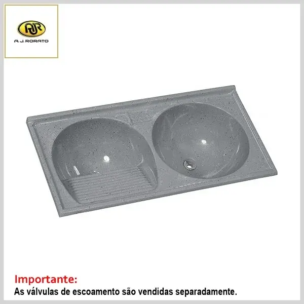 Tanque de Roupas Duplo N1 100x52 5074 Mármore Sintético Granitado - Cinza - AJ Rorato