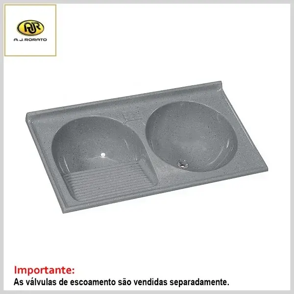 Tanque de Roupas Duplo N2 110x59 5072 Mármore Sintético Granitado - Cinza - AJ Rorato
