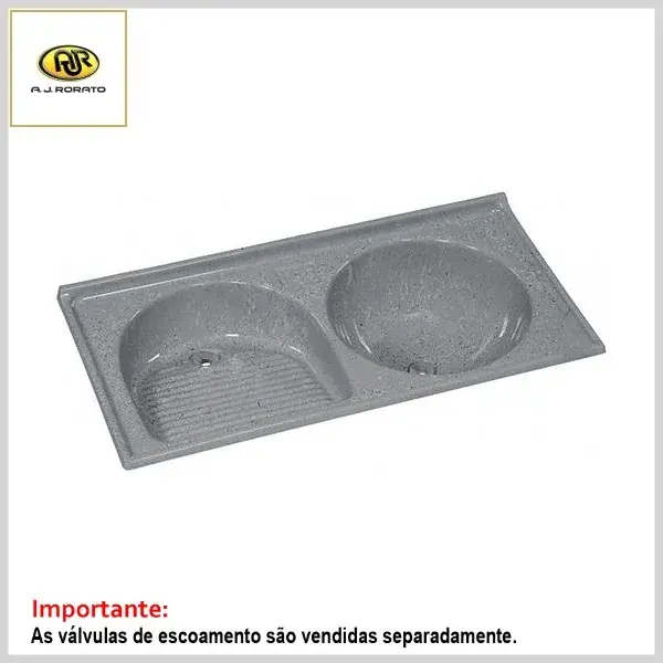 Tanque de Roupas Duplo N3 110x55 5020 Mármore Sintético Standard - Cinza - AJ Rorato