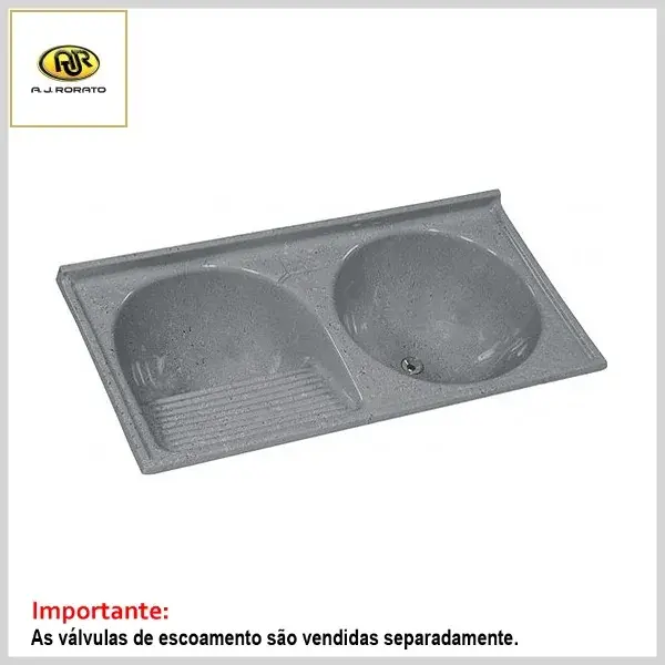 Tanque de Roupas Duplo N4 138x69 5021 Mármore Sintético Standard - Cinza - AJ Rorato