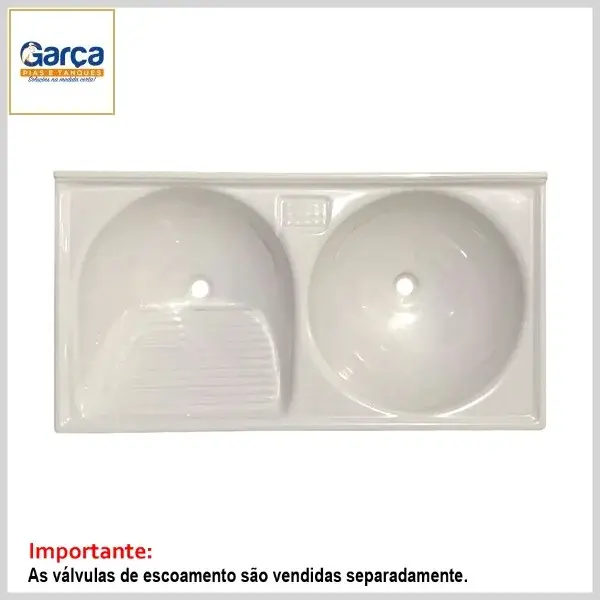 Tanque de Roupas Duplo Redondo 140x65 Mármore Sintético Granitado - Branco - Garça