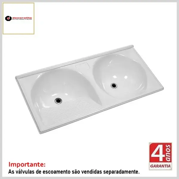Tanque de Roupas Duplo T-105 105x55 Mármore Sintético - Branco - Decoralita