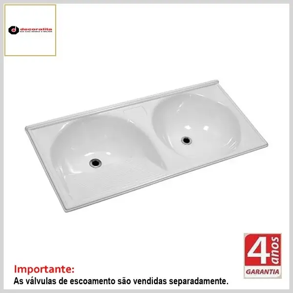 Tanque de Roupas Duplo T-112 112x53 Mármore Sintético - Branco - Decoralita