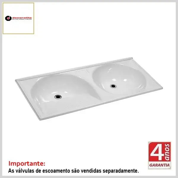 Tanque de Roupas Duplo T-140 140x65 Mármore Sintético - Branco - Decoralita