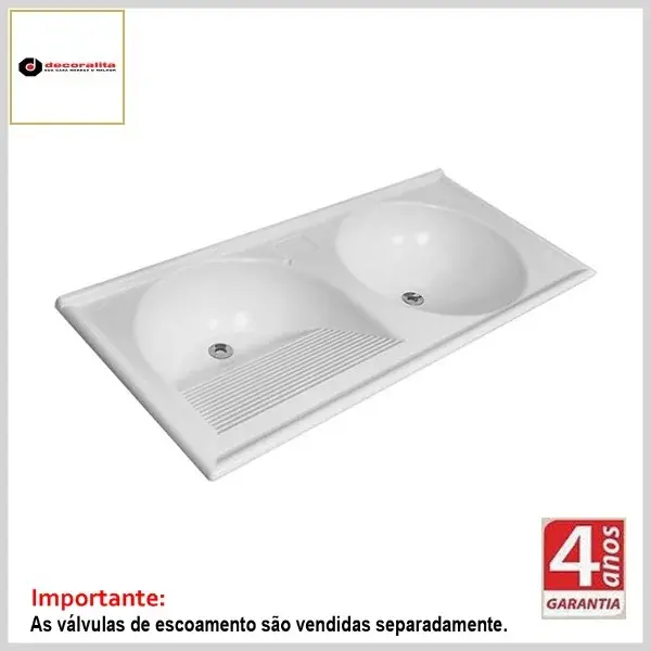 Tanque de Roupas Duplo TF-120 120x50 Thermofibra Sintético - Branco - Decoralita