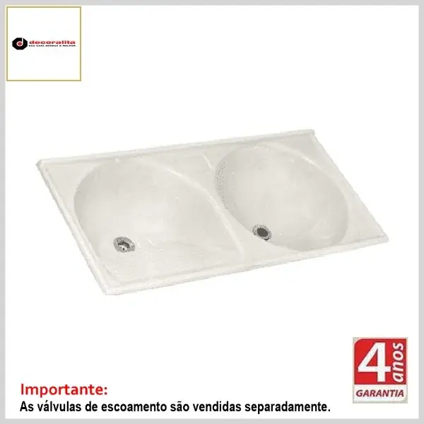 Tanque de Roupas Duplo TM-102 102x50 Marmofibra Sintético - Branco - Decoralita
