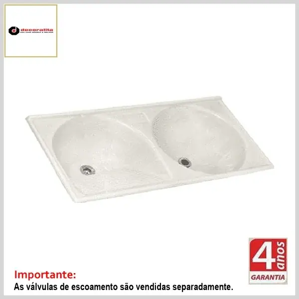 Tanque de Roupas Duplo TM-112 112x53 Marmofibra Sintético - Branco - Decoralita