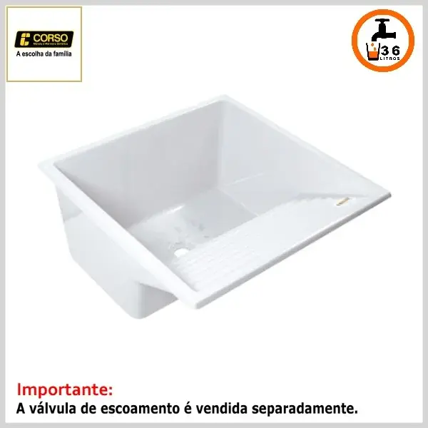 Produto confeccionado em mármore sintético granitado brilhante, sendo indicado para utilização em lavanderias e áreas de serviço. O produto deve ser instalado sobre mão francesa ou estrutura/parede de alvenaria.