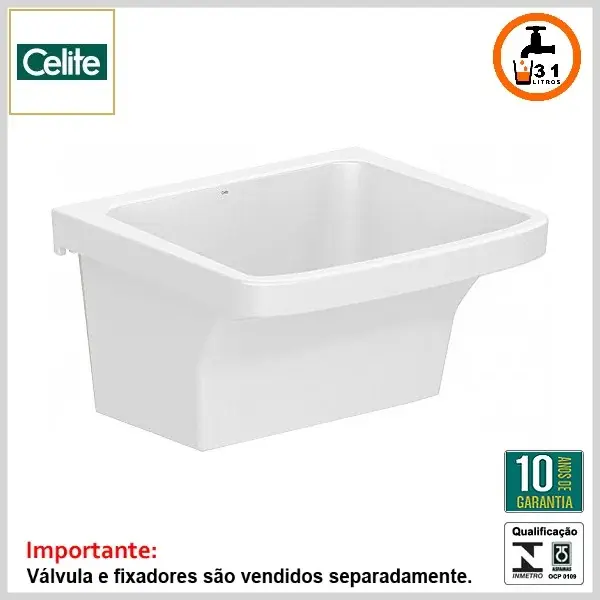 Produto confeccionado em material cerâmico esmaltado, sendo indicado para utilização em lavanderias e áreas de serviço. O produto pode ser instalado com coluna de apoio Celite ref.51203 (fixada no piso) ou sem coluna, desde que sobre parede de alvenaria e com o uso de conjunto de fixação apropriado, adquiridos em separado.
