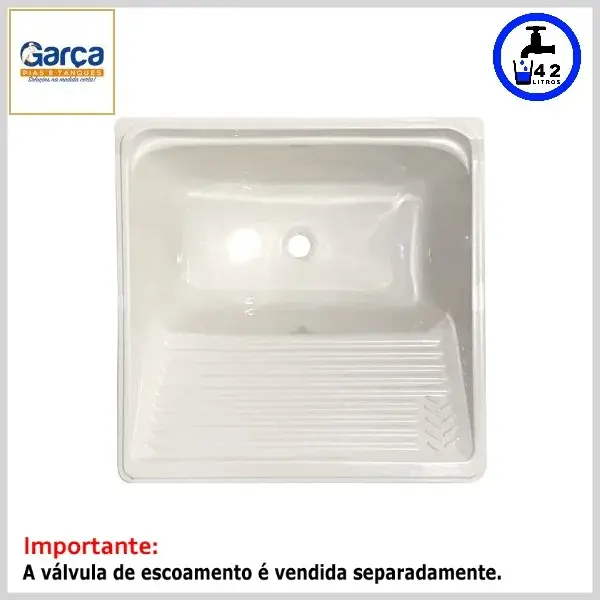Tanque de Roupas Simples Fundo 60x60 42lts Mármore Sintético c/Fibras - Branco - Garça