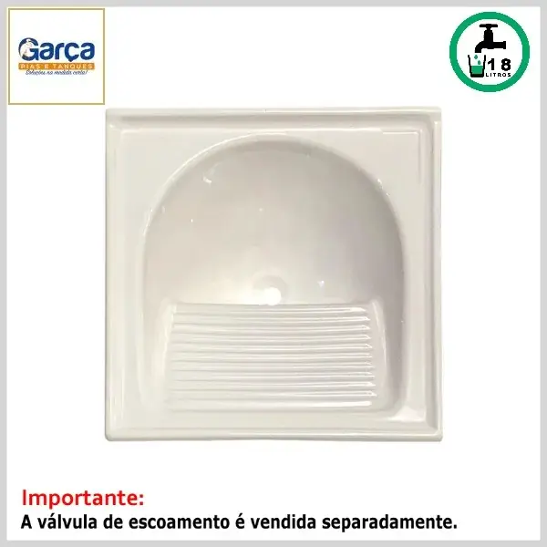 Tanque de Roupas Simples Raso 60x60 18lts Mármore Sintético c/Fibras - Branco - Garça