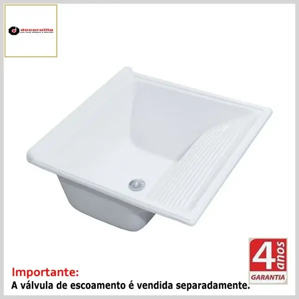 Tanque de Roupas Simples T-060 60x60 Mármore Sintético - Branco - Decoralita