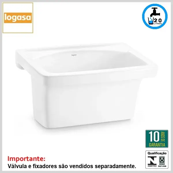 Produto confeccionado em material cerâmico esmaltado, sendo indicado para utilização em lavanderias e áreas de serviço. O produto deve ser instalado sem coluna, fixado em parede de alvenaria, com o uso de fixadores apropriados, adquiridos em separado.