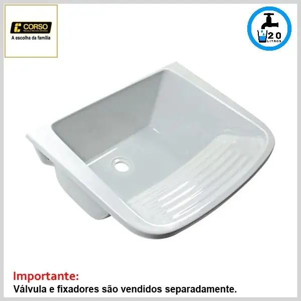 Produto confeccionado em mármore sintético brilhante, sendo indicado para utilização em lavanderias e áreas de serviço. O produto deve ser instalado fixado em parede de alvenaria, com o uso de conjunto de fixação apropriado, adquiridos em separado..