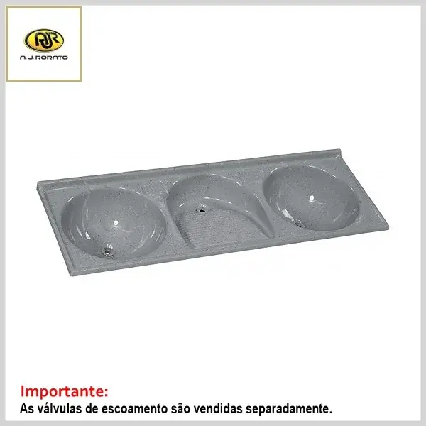 Tanque de Roupas Triplo 155x56 5093 Mármore Granitado - Cinza - AJ Rorato