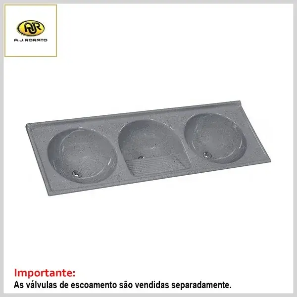 Tanque de Roupas Triplo N4 163x57 5005 Mármore Sintético Standard - Cinza - AJ Rorato