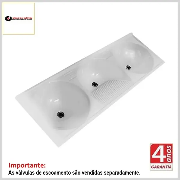 Tanque de Roupas Triplo TF-145 145x50 Thermofibra Sintético - Branco - Decoralita