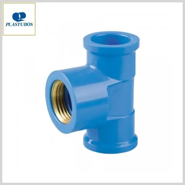 Tê PVC Água Fria LR Bucha Latão Soldável/Roscável - 20 mm x 1/2 pol - Plastubos