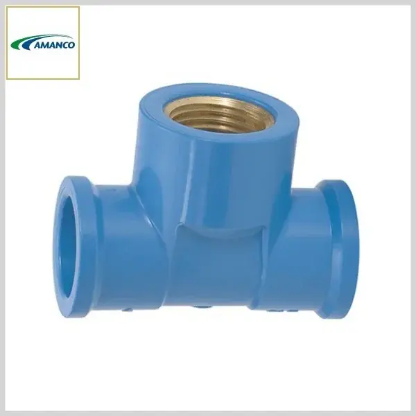 Tê PVC Água Fria LR Bucha Latão Soldável/Roscável - 20 mm x 1/2 pol - Amanco