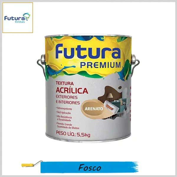 A Textura Acrílica Futura Arenato Premium possui como característica um acabamento sofisticado, fino e suave. Contém combinação de partículas médias e finas de cargas minerais que proporcionam um belo efeito estético e um acabamento ainda mais nobre às superfícies, além de um exclusivo hidrorrepelente que impede a penetração de água e aumenta a sua resistência ao intemperismo. Na cor branca e acabamento fosco, está também disponível em diversas cores prontas e no Sistema Magia das Cores com mais de 2000 tonalidades.