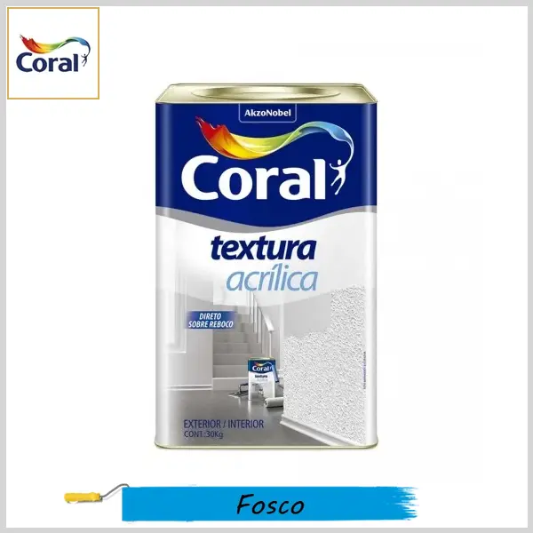 CORAL TEXTURA ACRÍLICA é um produto acrílico de acabamento fosco, indicado para aplicação em paredes internas e externas. Com aplicação simples e fácil, sua aplicação pode ser feita diretamente sobre o reboco, disfarçando as imperfeições da superfície e dispensando o uso de massa fina. Por ser de cor branca, pode receber pintura de tinta acrílica ou látex sobre a mesma, deixando os ambientes com o efeito decorativo desejado. Uma lata de 30kg cobre até 35m² por demão, podendo variar de acordo com a diluição do produto, irregularidades das superfícies e/ou do efeito desejado.