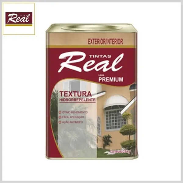 REAL TEXTURA HIDRORREPELENTE é uma massa a base de resina acrílica Hidrorrepelente, formulada para criar diversos efeitos texturizados, podendo ser aplicada em superfícies externas e internas de reboco, cimento amianto, chapas pré-moldadas, concreto aparente e paredes pintadas.