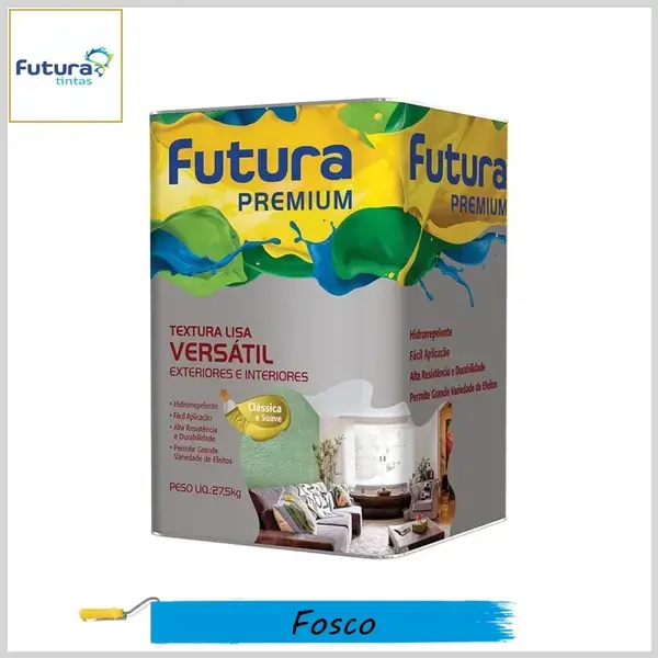 A Textura Acrílica Lisa Versátil Futura Premium possui como característica um acabamento mais clássico para efeitos suaves, permitindo disfarçar pequenas imperfeições em superfícies internas e externas de alvenaria, massa corrida, massa acrílica, gesso e ficrocimento. Contém partículas finas de minerais especiais de aspecto final mais delicado, além de um exclusivo componente hidrorrepelente que protege as superfícies e impede a penetração de água, aumentando a sua resistência ao intemperismo. Na cor branca e acabamento fosco, está também disponível em diversas cores prontas e no Sistema Magia das Cores com mais de 2000 tonalidades.