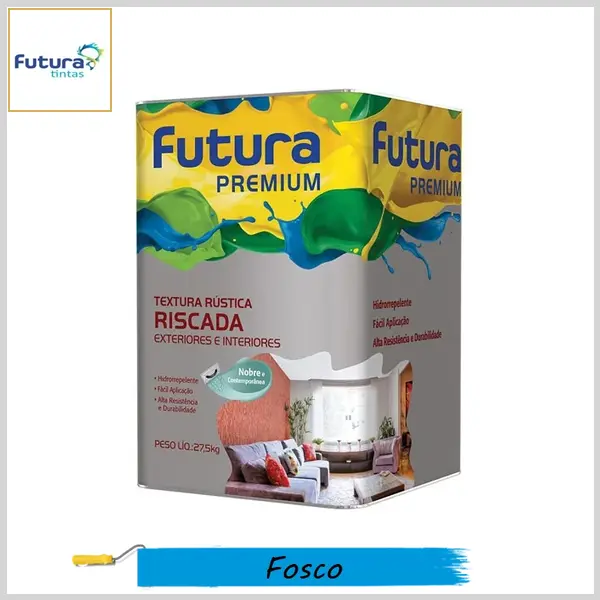 A Textura Acrílica Rústica Riscada Futura Premium possui como característica um acabamento contemporâneo e nobre, permitindo disfarçar pequenas imperfeições em superfícies internas e externas de alvenaria, massa corrida, massa acrílica, gesso e ficrocimento. Contém partículas mais grossas de minerais especiais para obter-se o efeito riscado, além de um exclusivo componente hidrorrepelente que protege as superfícies e impede a penetração de água, aumentando a sua resistência ao intemperismo. Na cor branca e acabamento fosco, está também disponível em diversas cores prontas e no Sistema Magia das Cores com mais de 2000 tonalidades.