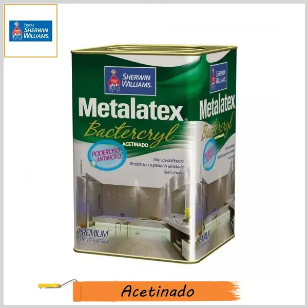 Tinta Acrílica Metalatex® Bactercryl Premium Acetinado, Lata 18lt - Branco - Sherwin Williams