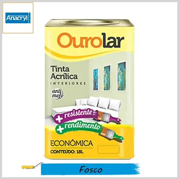 Ourolar Anacryl é uma tinta fosca de qualidade econômica, indicada para pintura ou repintura de superfícies internas. Pode ser aplicada em alvenarias, massas corridas e acrílicas, texturas e gesso, possuindo um bom poder de cobertura e rendimento e excelente acabamento.