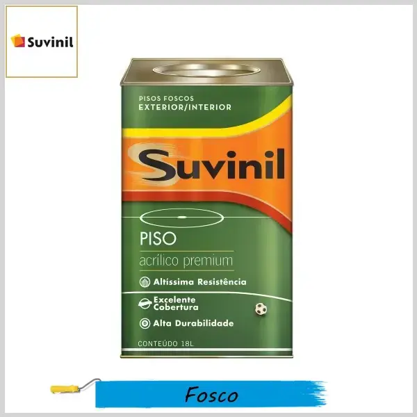 Suvinil Acrílico Piso é uma tinta de revestimento para pintura externa e interna de pisos. É um produto de fácil aplicação, secagem rápida, permitindo uma boa cobertura e aderência, bom alastramento, resistente à alcalinidade, maresia e abrasão. Todos estes atributos tornam o produto uma ótima opção econômica, para renovar e embelezar pisos.