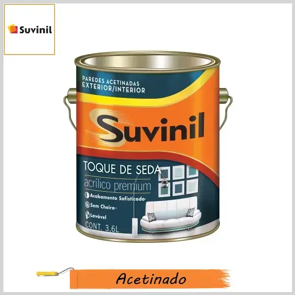 Suvinil Acrílico Premium Toque de Seda é uma tinta de fácil aplicação, baixo respingamento, ótima cobertura, excelente alastramento e resistência às intempéries e lavabilidade. Seu brilho suave proporciona extrema facilidade de limpeza e seu fino acabamento confere requinte e sofisticação aos ambientes. Possui fórmula inovadora, sem cheiro em até três horas após a aplicação e ocasionando muito menos respingos.