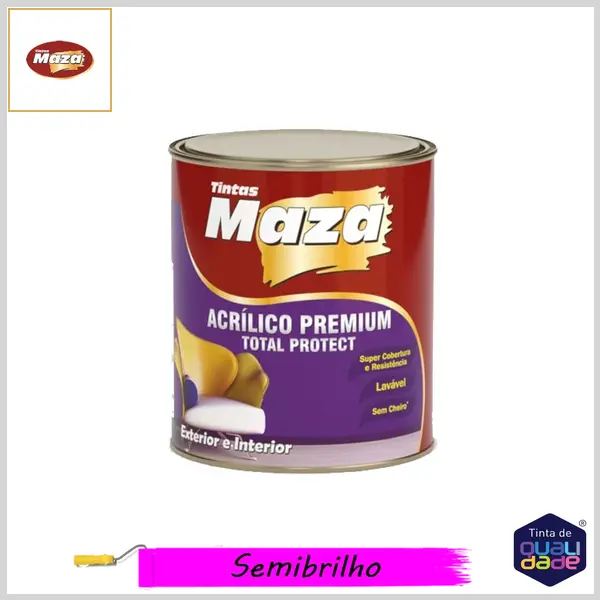 Maza Acrílico Total Protect é uma tinta acrílica de categoria Premium lavável e sem cheiro, de alto desempenho e durabilidade, com excelente rendimento e grande resistência à intempéries. Com acabamentos acetinado, fosco e semibrilho, é indicada para pintura de superfícies internas e externas de reboco, massa acrílica ou corrida, texturas, concreto, fibrocimento, gesso entre outras.
