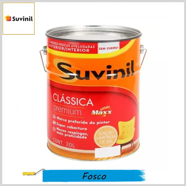 SUVINIL CLÁSSICA é uma tinta especialmente desenvolvida com uma fórmula que garante 2 vezes mais resistência e 40% mais rendimento, além de ser sem cheiro e oferecer facilidade na aplicação.