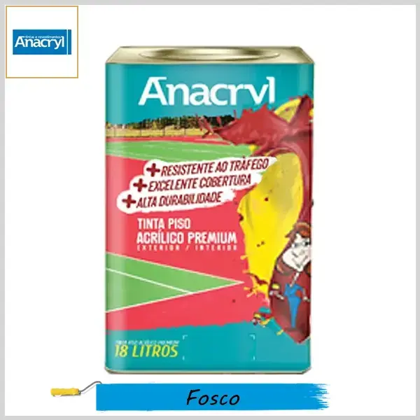 A Tinta para Piso Anacryl é um produto acrílico de qualidade premium com acabamento fosco, indicada para pintura ou repintura de pisos e cimentados internos ou externos em estacionamentos, escadarias, áreas de lazer e quadras poliesportivas. Possui excelente poder de cobertura com alta durabilidade e resistência ao tráfego.