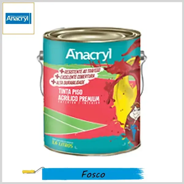 A Tinta para Piso Anacryl é um produto acrílico de qualidade premium com acabamento fosco, indicada para pintura ou repintura de pisos e cimentados internos ou externos em estacionamentos, escadarias, áreas de lazer e quadras poliesportivas. Possui excelente poder de cobertura com alta durabilidade e resistência ao tráfego.